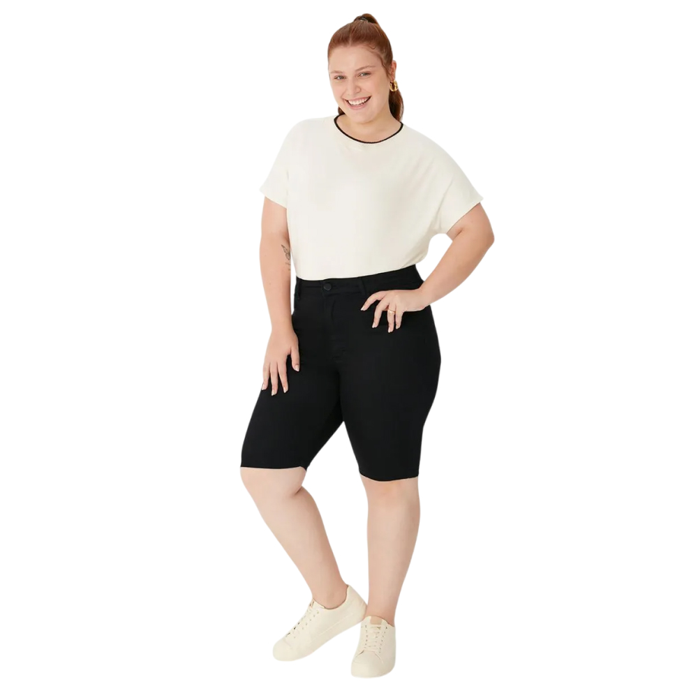 Bermuda Malwee Ciclista Plus Size, perfeita para destacar seu estilo e oferecer conforto em qualquer ocasião! Feita em sarja super stretch, proporciona ajuste impecável e liberdade de movimentos. Com modelagem cintura média, é ideal para valorizar suas curvas. Combine com blusas e camisetas para looks modernos e versáteis.