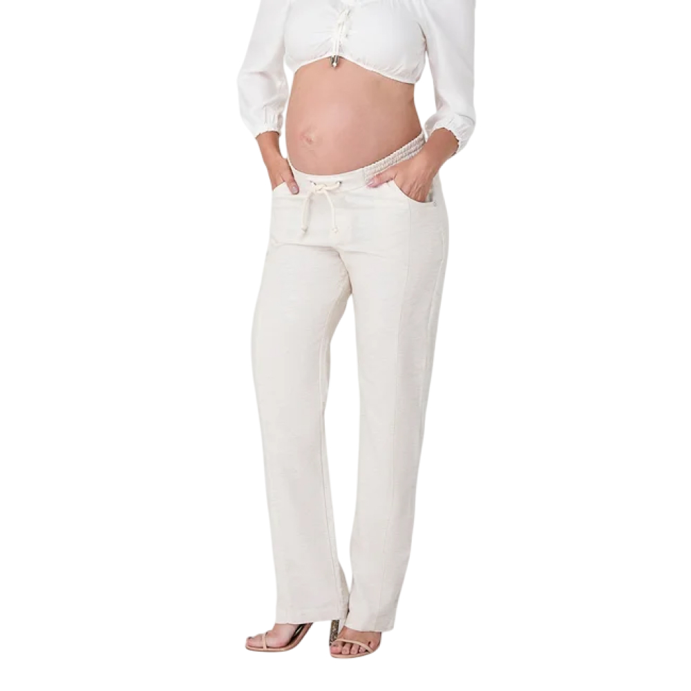 Infinitos looks para a sua gestação, e sempre confortáveis! Vem conhecer a nossa Calça Gestante Reta de Linho, uma peça versátil para o dia-a-dia, que garante um visual natural, sofisticado e atemporal para os seus looks. Do look casual ao formal, é a peça curinga para o seu guarda-roupa na gravidez. Possui Cós anatômico, com elástico e cordão natural decorativo, modelagem comfy, com barra reta e bolsos laterais. Recorte frontal por todo comprimento da peça, a barra pode ser dobrada para um look mais despojado. Possui forro, para evitar transparência.