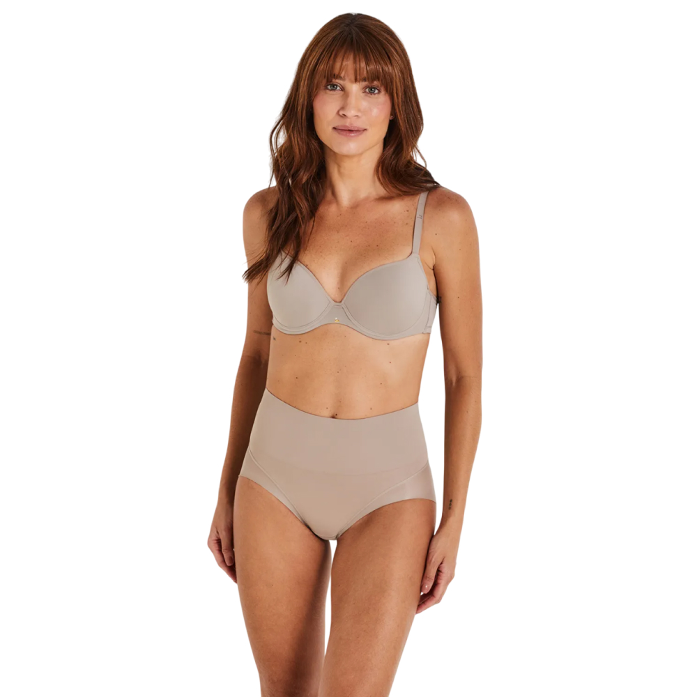 Calcinha Liz Modeladora, com cintura alta da linha Shapewear Invisible Control, reduz extra forte o abdome, zero marcas nas pernas, costura anatômica para modelar o bumbum, desaparece totalmente sob a roupa.