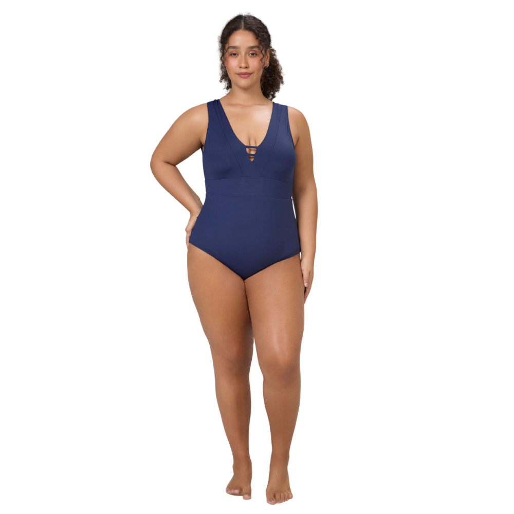 Maiô Alto Giro Decote V, possui alças largas, bojo embutido com espuma soft, propiciando conforto e mantendo o volume natural dos seios. O modelo possui um recorte na cintura, que valoriza a silhueta. Oferece alta sustentação no abdômen, graças ao tecido interno mais firme. É elaborado em Lycra Praia com proteção UV + 50, forro, excelente toque e durabilidade.