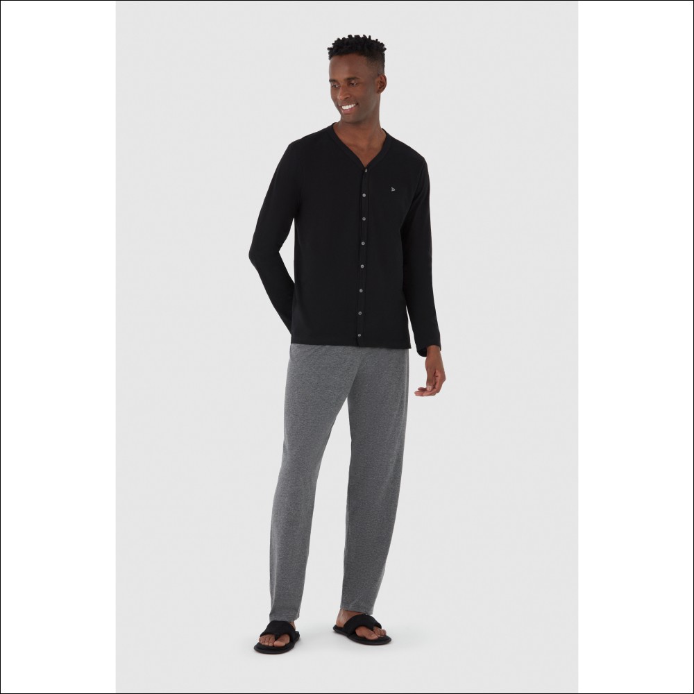 Pijama Malwee Masculino Manga Longa com Abertura, possui blusa com decote V e abertura frontal, essa funcional para situações pós cirúrgicas. Calça com cintura intermediária e elástico embutido no cós. O conjunto é macio e extremamente confortável.