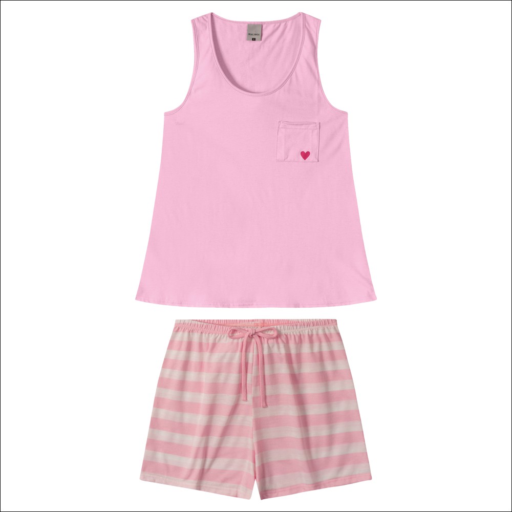 Short Doll Malwee Cavado, possui decote redondo, bolso lateral esquerdo e modelagem soltinha. Short com cintura intermediária, elástico embutido no cós, caimento mais soltinho, estampa em listras e falso amarrador frontal. O conjunto é macio e extremamente confortável.