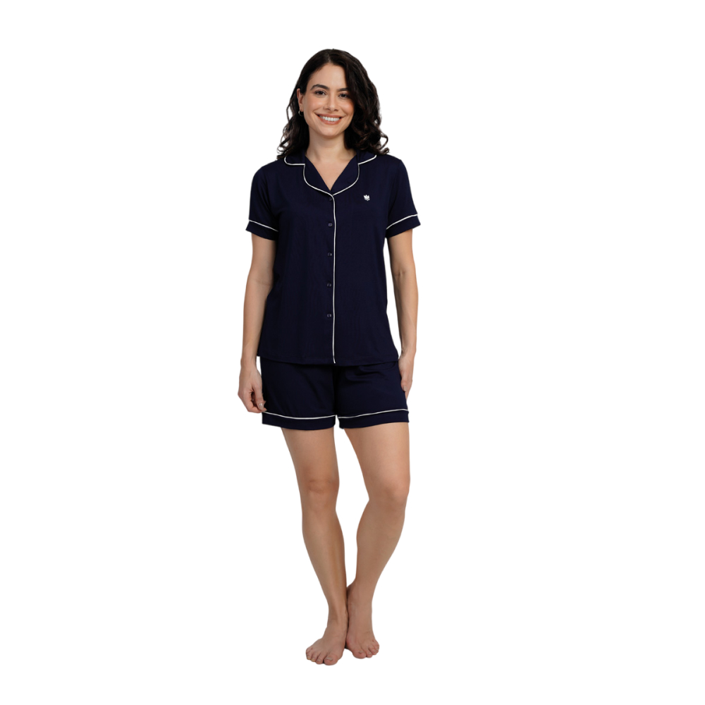 Short Doll Podiun Manga Curta Com Abertura, este short doll feminino estilo americano combina suavidade e caimento perfeito, ideal para noites de descanso e momentos de lazer. Os recortes de contraste destacam o design moderno e charmoso. A abertura frontal facilita o uso, tornando-o uma excelente escolha para maternidade e amamentação, proporcionando praticidade no dia a dia.