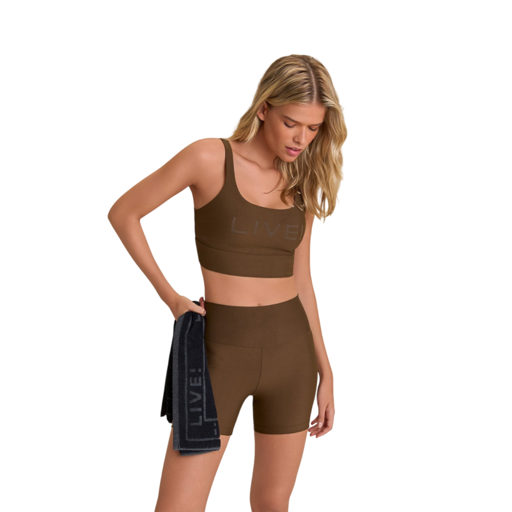 Possui estampa exclusiva LIVE! trazendo exclusividade ao produto, além de evitar transparência durante o uso, permite maior respirabilidade, evitando o suor excessivo.