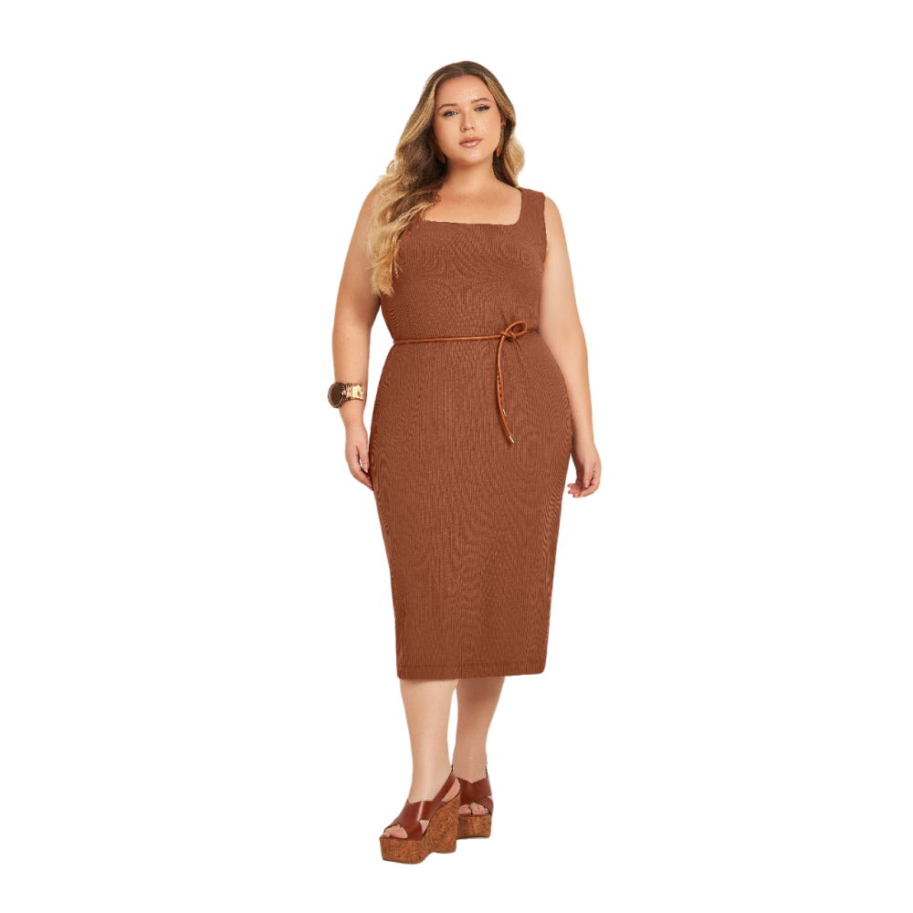 Vestido Lisamour Cavado Plus Size, com um tecido super fluido e suave, essa peça supera expectativas, sendo um modelo canelado de vestido midi ele tem decote quadrado, ele tambem não possui mangas sendo otimo para dias mais quentes.